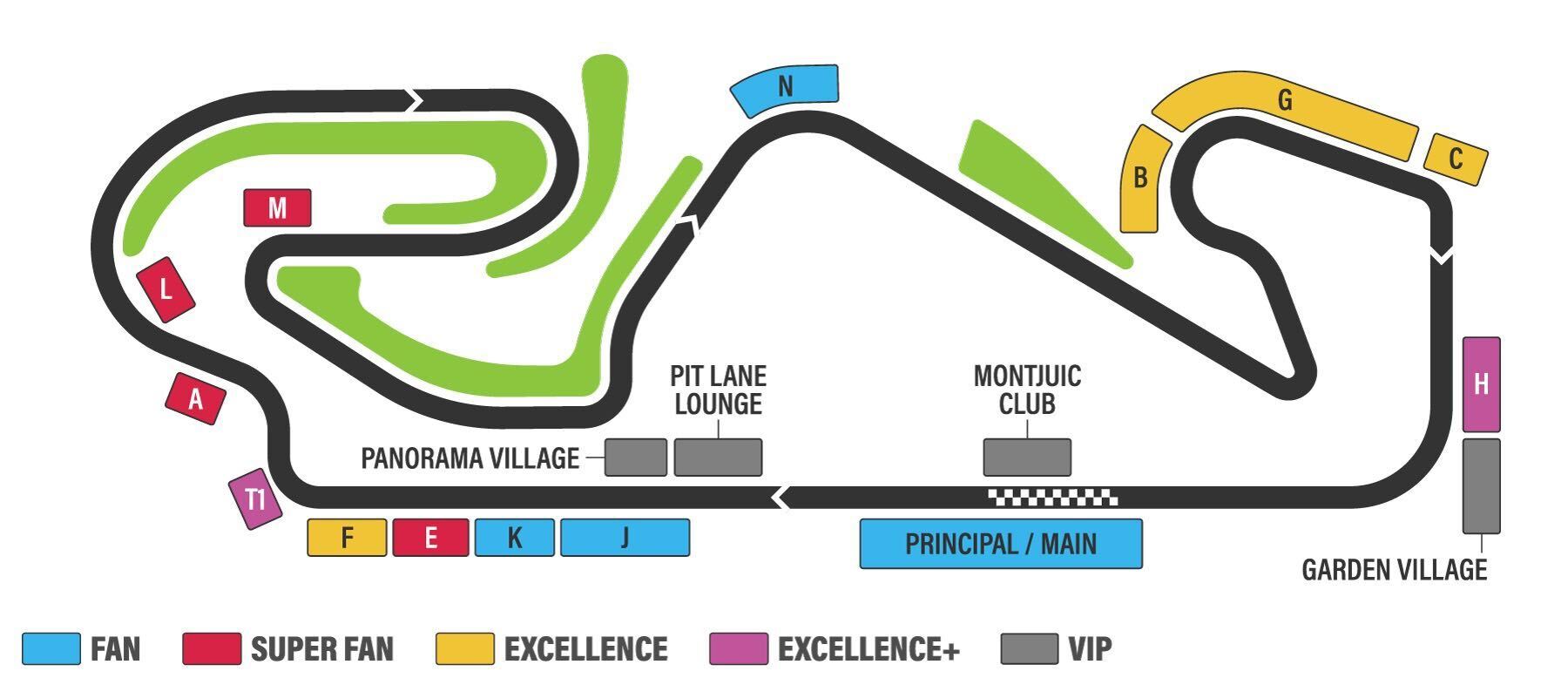 The Circuit de Barcelona-Catalunya has one of the longest finishing straights in the championship. And it's the one you'll be watching from the main grandstand. You can look forward to a view of the race start, dramatic moments on the pit lane and the legendary Barcelona totem with the current standings always in front of your eyes. The grandstand is one of the few covered - priceless on hot Spanish days! It has only one flaw - you can't see any of the curves from most of the seats.